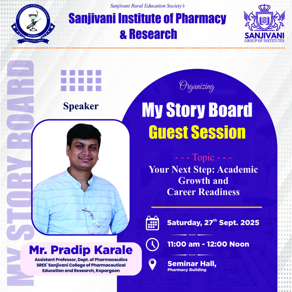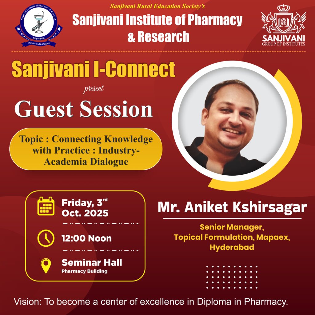 Sanjivani Institute of Pharmacy and Research, Kopargaon, was established in September 2003 , under kind guidance of great visionary Late Hon. Shri. Shankarraoji Genuji Kolhe Saheb, Ex-Minister, Govt. of Maharashtra.